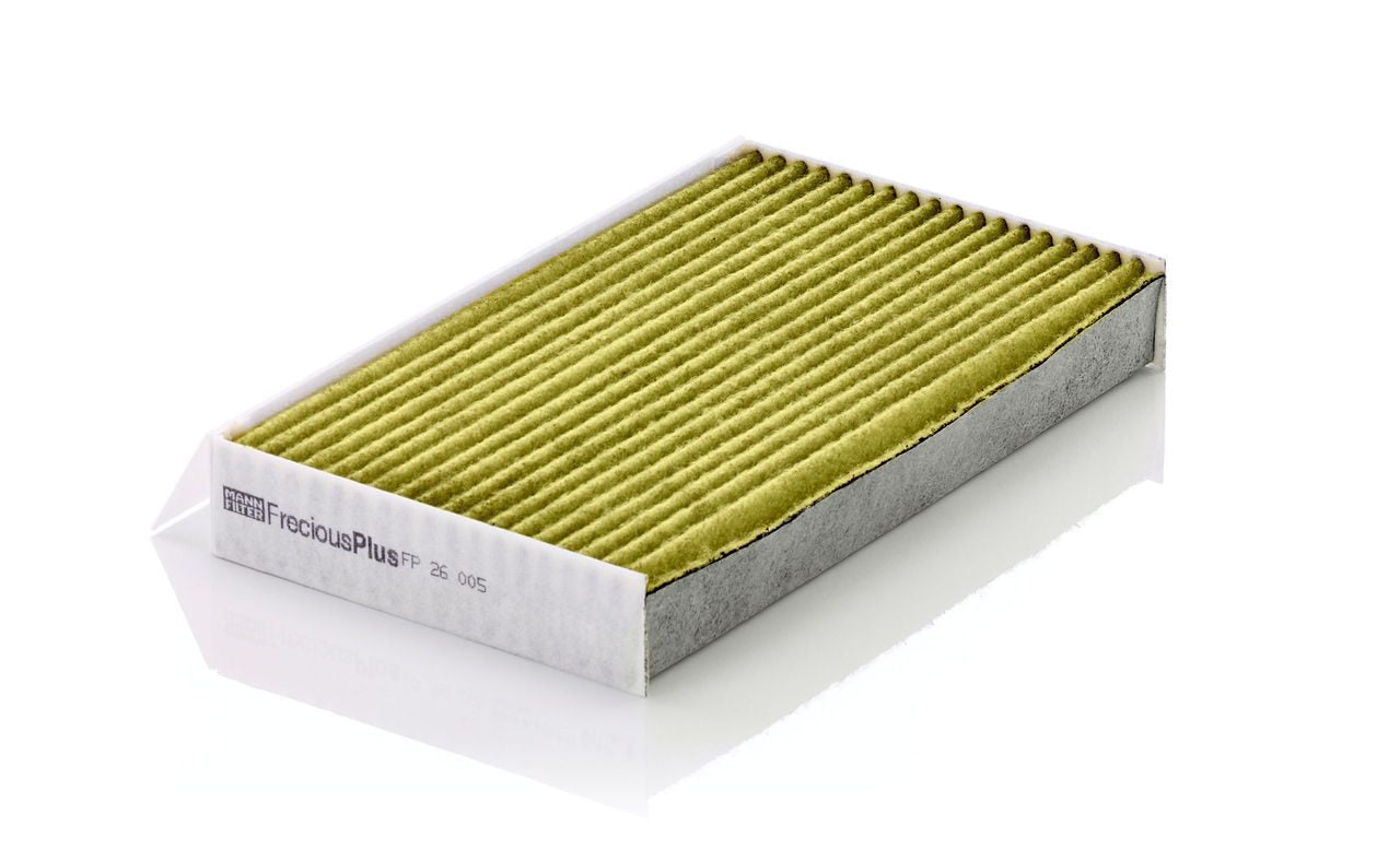 Biofunctional MANN-FILTER FreciousPlus cabin air filters - nearly 100% protection against nitrogen oxides, dust, allergens and mould - harmful gases and unpleasant odours are also eliminated and virus aerosols filtered. The three-layer filter technology absorbs almost 100% of allergens, reduces the growth of molds and bacteria by more than 98% and stops fine dust almost completely.Specification