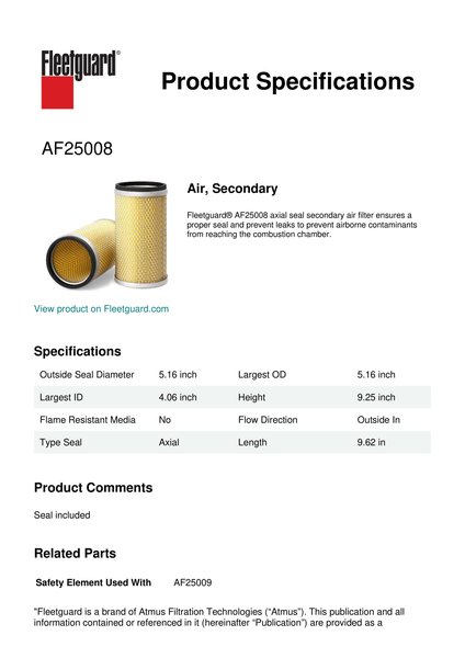 Fleetguard AF25008 Air, Secondary