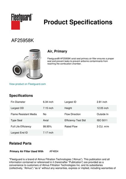 Fleetguard AF25958K Air, Primary