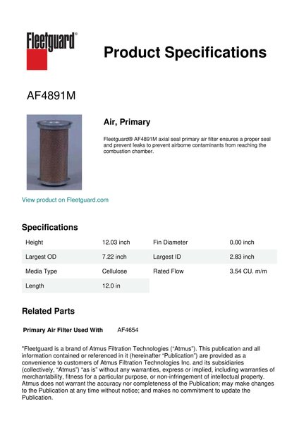 Fleetguard AF4891M Air, Primary