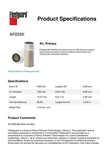 Fleetguard AF835K Air, Primary