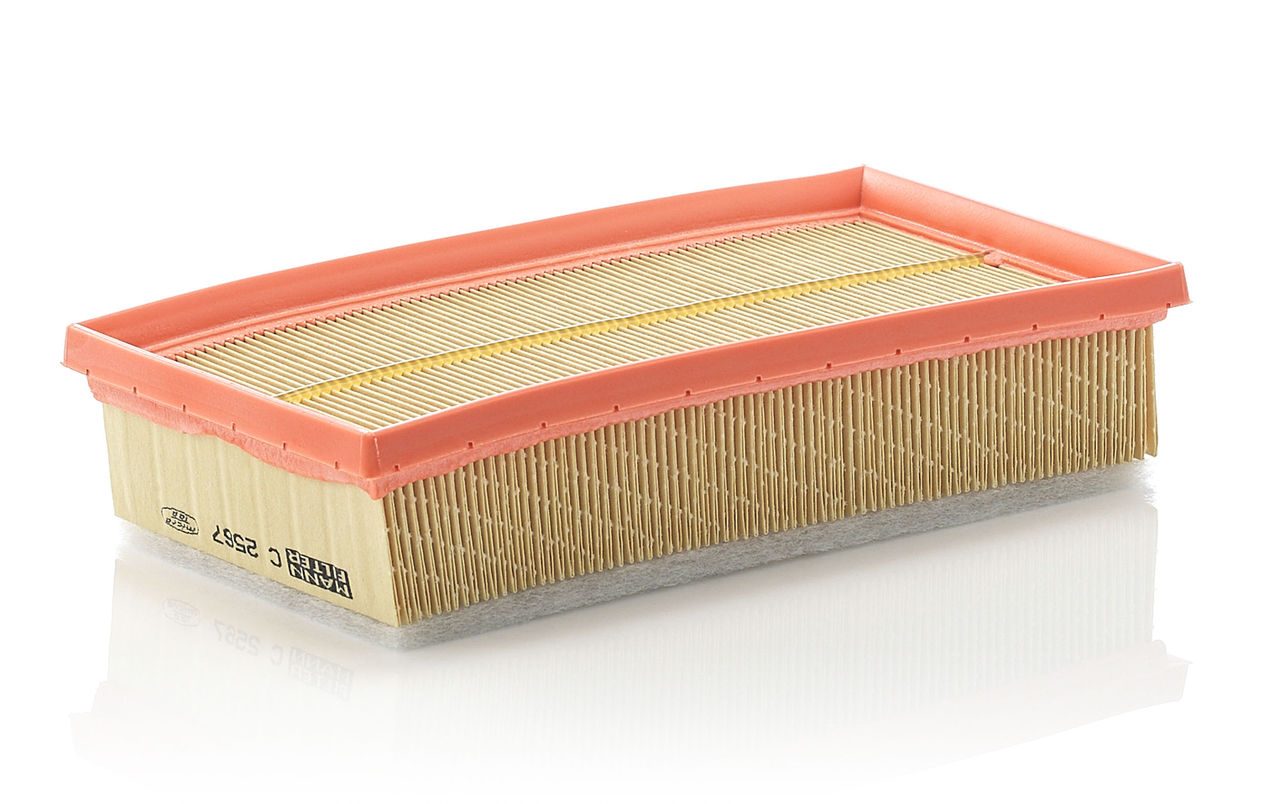 High-quality MANN-FILTER air filters for clean air intake and optimum protection for your engine, mass air flow sensor & other sensitive components / They meet requirements of modern engine technology. Highest dirt holding capacity and dirt separation efficiency, low flow resistance and high pleat stability ensure functional reliability during the entire service interval.