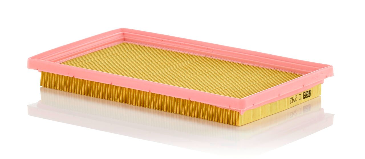 High-quality MANN-FILTER air filters for clean air intake and optimum protection for your engine, mass air flow sensor & other sensitive components / They meet requirements of modern engine technology. Highest dirt holding capacity and dirt separation efficiency, low flow resistance and high pleat stability ensure functional reliability during the entire service interval.