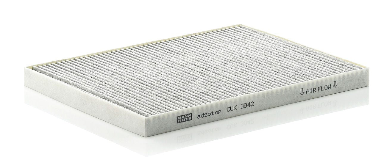 High-quality MANN-FILTER cabin filters with active carbon - nearly 100% protection from particles like pollen, diesel soot & tyre abrasion / Additional protection from harmful gases & unpleasant odour. The trated highly-effective activated carbon gives protection against harmful gases such as ozone, nitrogen oxide or sulphur dioxide and eliminates unpleasant odours during the entire service interval.