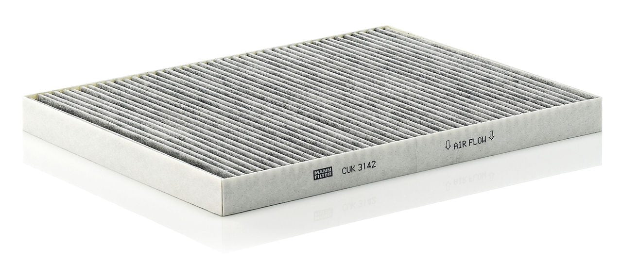 High-quality MANN-FILTER cabin filters with active carbon - nearly 100% protection from particles like pollen, diesel soot & tyre abrasion / Additional protection from harmful gases & unpleasant odour. The trated highly-effective activated carbon gives protection against harmful gases such as ozone, nitrogen oxide or sulphur dioxide and eliminates unpleasant odours during the entire service interval.